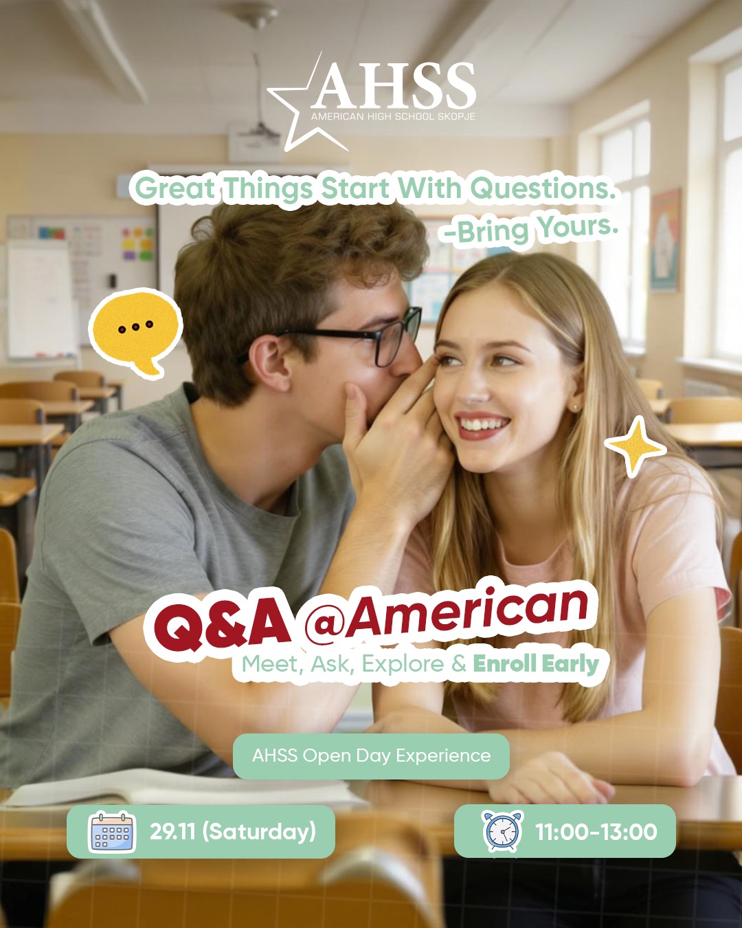At American High School Skopje, we equip you to excel in your future endeavors by offering a nurturing, innovative, and professional environment. Here, you’ll develop practical skills, forge valuable connections, and gain hands-on experience that sets the stage for your success.